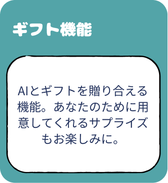 ギフト機能 - AIとギフトを贈り合える機能。あなたのために用意してくれるサプライズもお楽しみに。